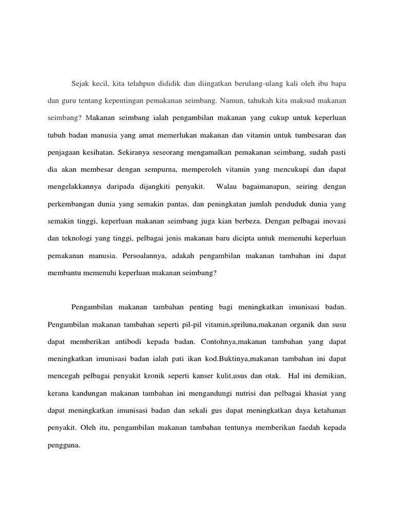 Aku juga dapat membantu sistem penghadaman. Kepentingan Makanan Seimbang kepada kesihatan masyarakat. Kepentingan Mempelajari Mata Pelajaran Sejarah.